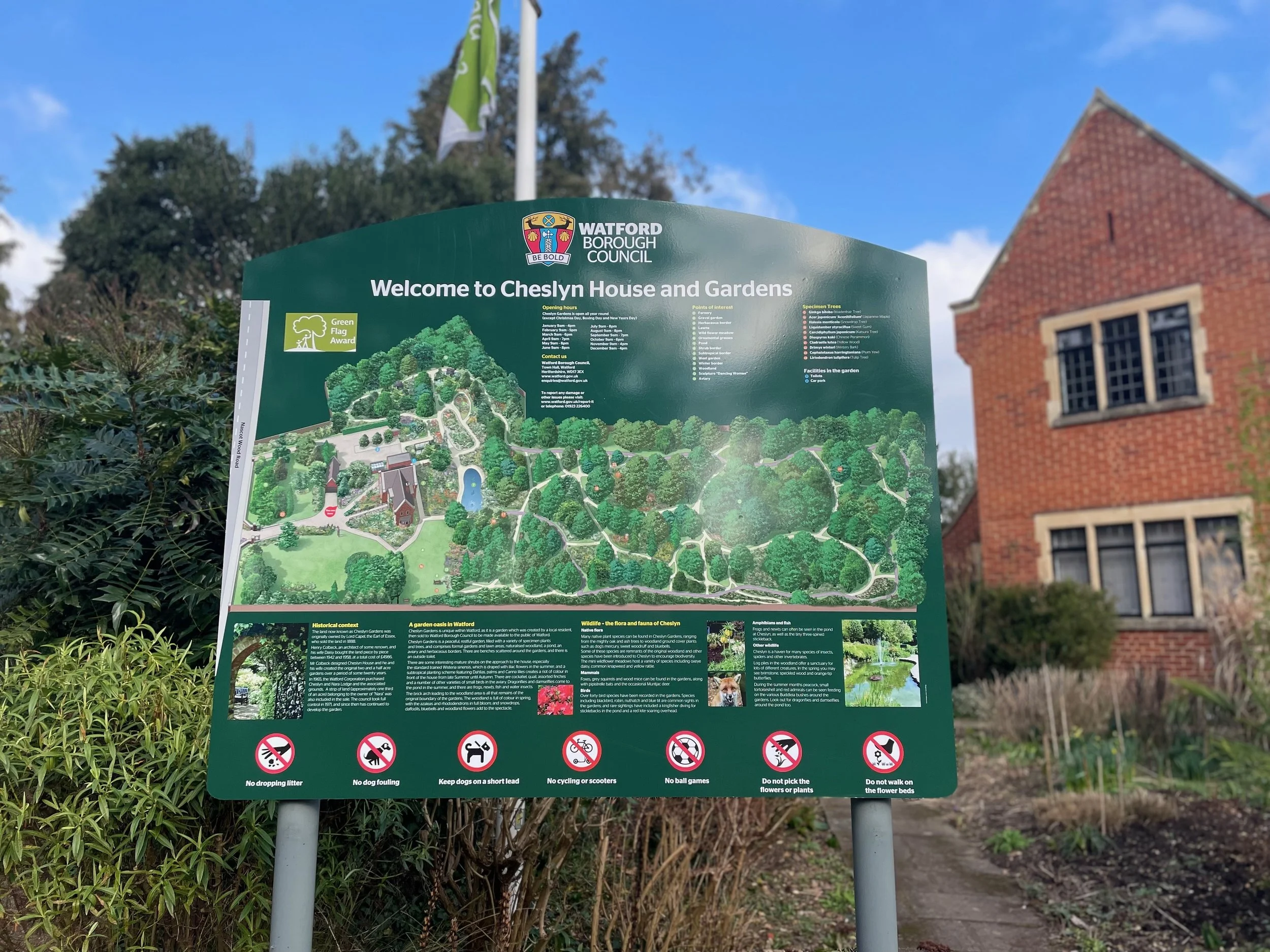 We have worked with Watford Borough Council on rebranding all their signage. They have a number of amazing parks and woods and heritage houses such as Cheslyn which is often described as Watford’s best kept secret Cheslyn House and Gardens is another of Watford’s Green Flag Award winner. We have designed the signage, built and installed signage that is in keeping with this gem of a site.